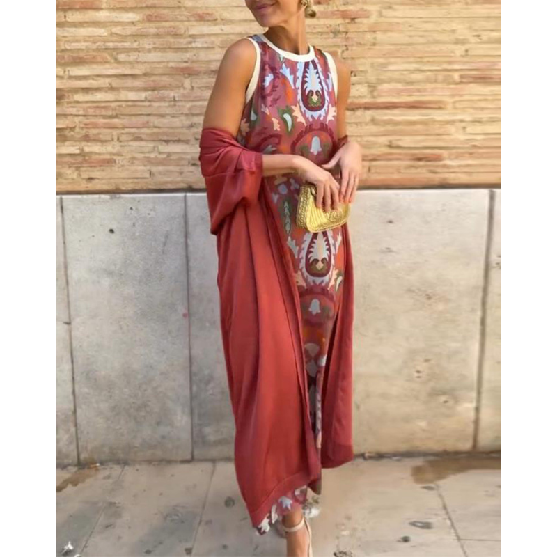 Maelle™ | Ærmeløs lang kjole med struktureret mønster