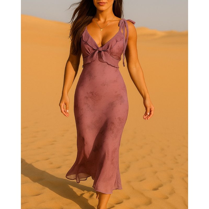Vi præsenterer Emil™, en drømmende midikjole, der kombinerer delikat charme med ubesværet tiltrækningskraft. Med bøde skulderbånd og bløde flæsedetaljer indrammer den din silhuet med ynde og femininitet. Den transparente, flagrende kant tilføjer let bevægelse, der får hvert skridt til at føles som en blød brise. Perfekt til haveaftaler, aftenmiddage eller enhver lejlighed, der kræver et strejf af romantik.