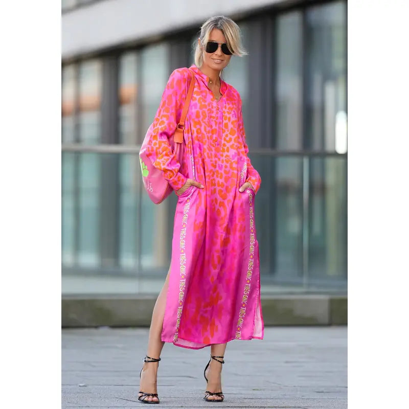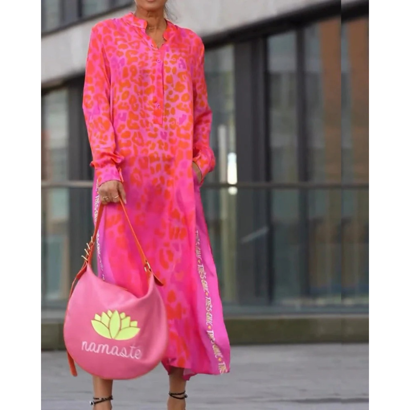 Afslør din dristige elegance med Leopard™ tunikakjolen, der er designet til at fremhæve din figur, samtidig med at den holder dig kølig og selvsikker. Med en opretstående krave med knapdetaljer og høje sideslidser tilbyder den en yndefuld silhuet med en moderne kant. Det flagrende stof sikrer åndbarhed på varme dage, hvilket gør den til det perfekte valg til både afslappede gåture og øjeblikke, der skiller sig ud.