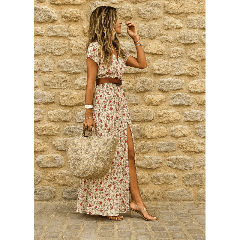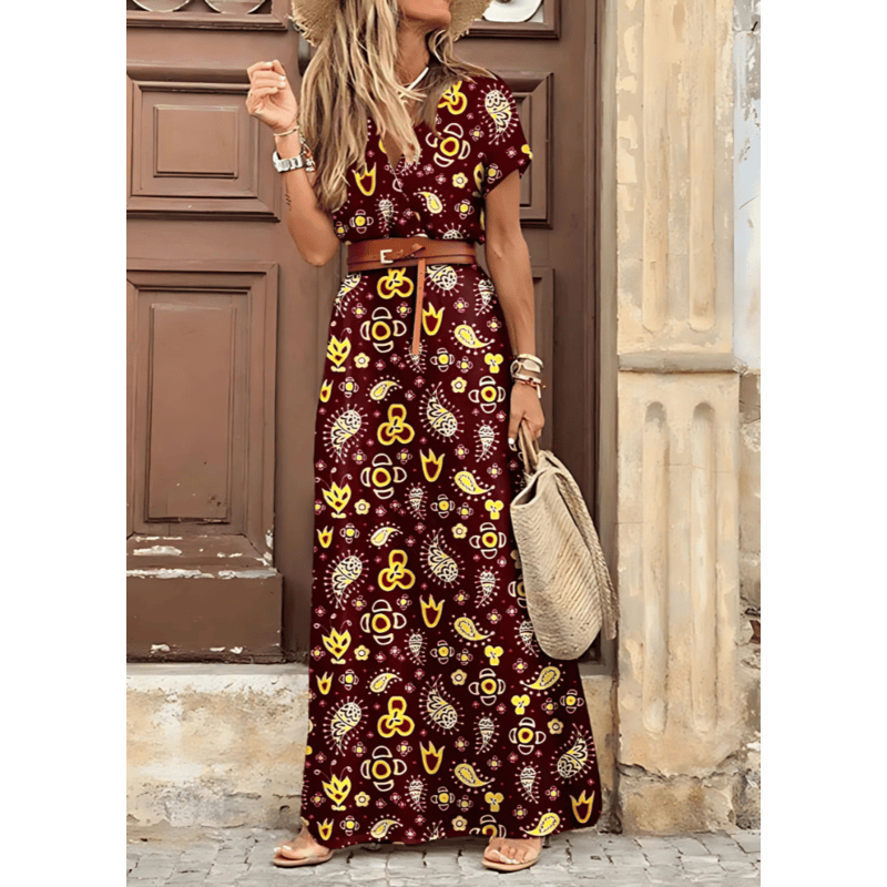 Maiken™ - Lang boheme-kjole med plisseret...