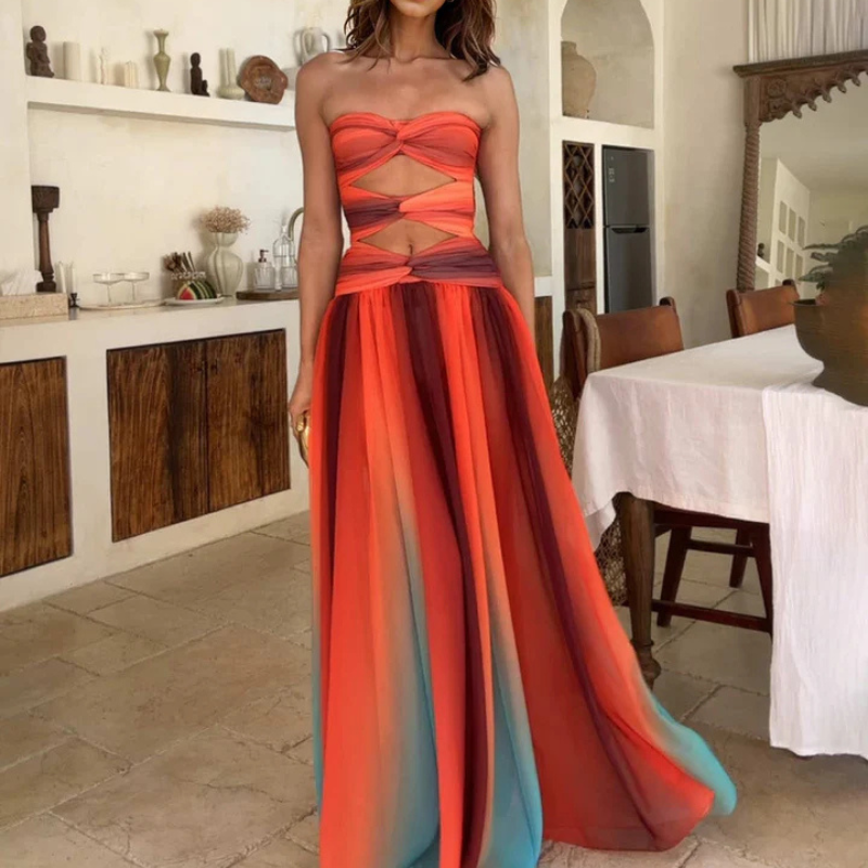 Væk opmærksomhed i den stropløse Margot™ maxikjole, det ultimative valg til elegance i varmt vejr. Denne kjole er designet til afslappet sofistikering og flyder ubesværet med hvert skridt, hvilket gør den til din favorit til ferier eller afslappede aftener ude. Dens afslappede charme forbipasserende smukt til sandaler eller erklæring tilbehør, hvilket giver dig uendelige stylingmuligheder uden besvær.