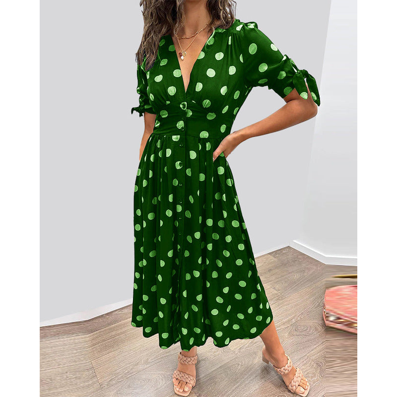 Produktspecifikationer: Mina™ | V-hals kjole med polkaprikker