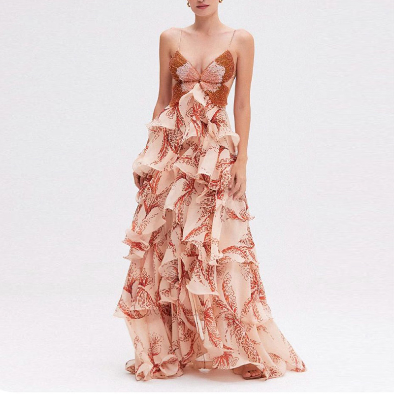 Nahia™ er din fantasi, der vækkes til levende en kjole, der hvisker frihed, elegance og ubesværet femininitet. Med bihule kaskader af flæser og yndefulde juveludskæring bevæger den sig som poesi i bevægelse. Ideel til solnedgangsfester, boheme flugter eller romantiske aftener Nahia™ lader dig føle, at du svævefly gennem både drømme og beundrende blikke.