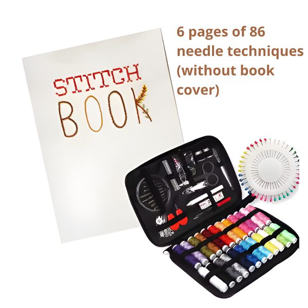 - Type B: 10 sider / 106 forskellige sting (inkl. nål og tråd) (Med omslag) (14 × 10 cm)